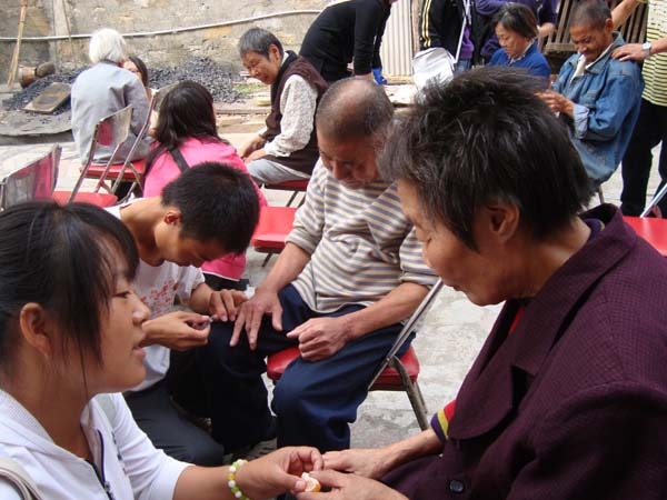 潘晓辉老师为福利院老人理发(摄于1990年)