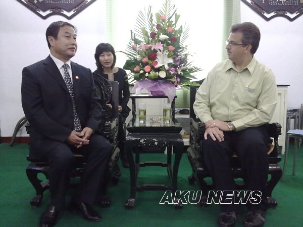 10月19日上午,美国肯塔基州前州长、美国州长协会前会长保尔•爱德华派顿及其夫人,肯塔基州匹克威尔市市长威廉姆•多罗万•布莱克本,匹克威尔市前市长、东肯塔基广播网总裁帕姆拉•托德•梅,中美文化交流基金会会长、肯塔基州摩海德大学终身教授别比尔•布斯,别克桑迪学院音乐指挥兼商会市场开发与项目协调员劳拉•露丝•希尔等一行,在安康市市政府副秘书长赵立根、安康市教育局局长杜科持等人陪同下来我院考察交流。 在王兴林院长、陈刚副院长、学院办公室主任屈险峰等人的陪同下,美国友人一行参观了我院陈少默纪念馆和陕西省蚕桑重点实验室,并到艺术系进行了学术交流。