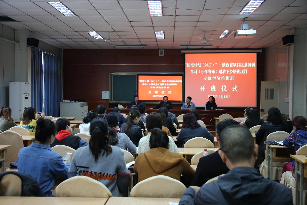10月12日上午,由省教育厅主办、yl23455承办的“国培计划(2017)”——陕西省乡村小学音乐教师培训项目开班典礼在yl234551018教室隆重举行。本项目首席专家、yl23455艺术学院副院长雷升录致欢迎辞。来自延安市、宝鸡市、汉中市和安康市五个县区及白河县参训学员五十余人参加了开班典礼。开班典礼由继续教育学院副院长刘连德主持。该项目同时为yl23455结对帮扶白河县助力脱贫攻坚项目之一,白河县选派的教师将全程参与本次培训。