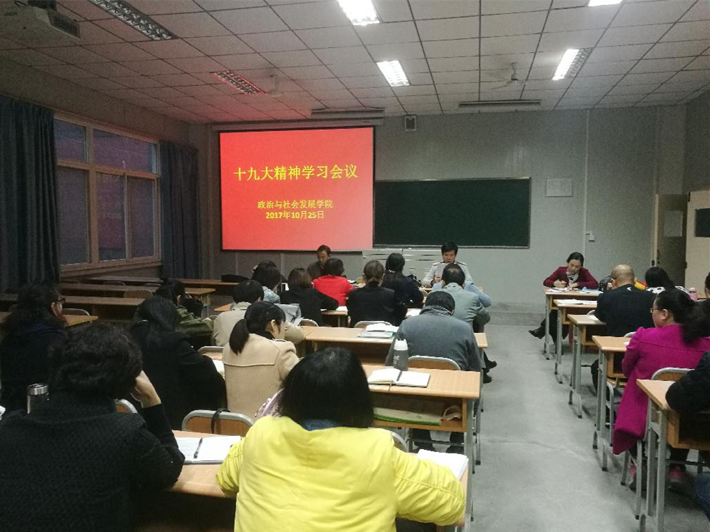 ——政社学院。在观看了十九大开幕式后,思政部立即行动起来,在组织部内教师认真学习的同时,积极部署开展十九大重大理论创新研究工作及十九大精神的“三进”工作。在十九大精神进课堂座谈会上,全体思想政治理论课教师围绕如何及时地把十九大精神、习近平新时代中国特色社会主义思想通过有效的方式方法充实到教学内容中去进行了探讨,并表示,一定要将十九大精神及重要理论创新成果的“三进”工作落实到位,确保能在第一时间用最新理论成果武装学生头脑。目前,思政部还举办了十九大报告图片展,何家理、冯丰收、谢安国、吴亚娥等教师围绕十九大报告中的亮点撰写了理论文章。10月19日下午,学院学生团总支书记邹裟带领2017级社会工作专业学生参加了安康博物馆以《铁血忠魂,抗战时期的安康机场》为主题的开展仪式。让同学们更加真实地了解了安康机场为抗日战争所作的贡献,激发了同学们的爱国热情,从而更加坚定了同学们坚定不移跟党走的信念。10月25日下午,学院在江南校区1021教室召开十九大精神的学习会。学院党总支书记冯丰收领学了习近平总书记在十九大报告的第一部分,并进行了深入的解读。