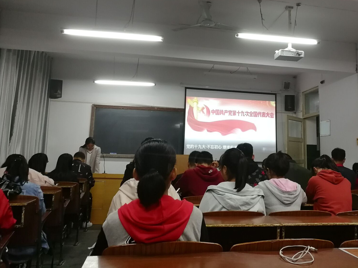 ——文传学院。10月18日上午9时,文传学院党总支组织党员教师和学生在2403教室集中收看党的十九大开幕式盛况,并于下午召开政治理论学习会议,传达习近平总书记的报告精神。会议由文传学院党总支书记于咏梅主持。于咏梅解读习近平十九大报告中出现的新思想和新精神,并要求所有老师要通过各种渠道和平台,认真学习会议讲话精神,并将其落实到具体的教育教学工作中。于咏梅强调,文传学院的各位教师尤其是党员教师要以饱满的精神状态、优良的工作作风和昂扬奋进的精神风貌做好教学和科研工作,把自己的思想认识和实际行动统一到报告精神上来,不忘初心,牢记使命,努力做党信任的教师和人民满意的灵魂工程师。文传学院院长戴承元谈道,十九大报告中提到“坚定文化自信,推动社会主义文化繁荣兴盛”,作为人文工作者,要深入学习报告内容,准确领会和深刻把握报告的丰富内涵,同时要用报告精神指导工作,把报告精神落实到文传学院的各项实际工作中去。10月22日下午,文传学院团总支、学生会在一号楼六楼报告厅召开本学期第二次学生干部例会,会议由团总支副书记、学生会主席田乃玉主持。会议伊始,全体起立齐唱团歌,田乃玉围绕“不忘初心,牢记使命”的主题对十九大报告进行了详细解读,她用习近平总书记在十九大上对青年学生的要求勉励大家:应尊师重教,学会创新,倡导创新文化,坚定理想信念,聚天下之英才,青年兴则国家兴!自觉做共产主义远大理想和中国特色社会主义共同理想的坚定信仰者和忠实实践者。10月28日晚,学院在江南校区大礼堂举行了“庆十九大 筑中国梦”迎新晚会。于咏梅代表领导班子为晚会致辞,并希望,全院学生要紧紧团结在以习近平同志为核心的党中央周围,“勇做时代的弄潮儿,在实现中国梦的生动实践中放飞青春梦想,在为人民利益的不懈奋斗中书写人生华章!”11月1日,学院党总支在陕南民间文化研究中心会议室组织教师学习十九大精神,会议由于咏梅主持,学院党总支宣传委员李景林主讲。李景林带领教师认真学习了十九大报告内容的第一至第五部分,与会教师在认真学习报告精神的同时,纷纷表示习近平总书记的报告传递出了新常态下的新动向,让人备受鼓舞,要以报告精神为引领,不忘初心,不负使命,立足本职岗位,积极投身新时代中国特色社会主义的伟大实践。学院副院长梁卫华,副院长、党总支纪检委员、教工第一党支部书记杨运庚,党总支组织委员、学生第一党支部书记邹棠华,学生第二党支部书记、团总支书记沈菲分别结合自身工作情况,谈了学习十九大报告的心得体会。
