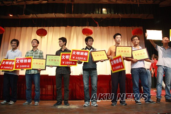 闵小平、向纪明分别宣读了学院2008―2009学年度文明班级、文明宿舍和三好学生、优秀学生干部,优秀团员、优秀共青团干部以及获得学院奖学金、单项奖励金学生的表彰决定和学院2008年暑期社会实践优秀团队、先进个人表彰文件,2009年“挑战杯”大学生课外学术科技作品优秀组织单位、获奖个人以及优秀指导教师名单,并共同为获奖集体、个人颁发了证书和奖金。学生代表政史系冀赵静同学在会上作了表态发言。