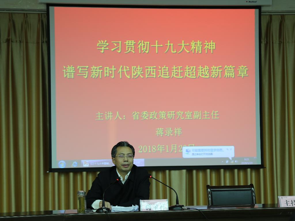在为期五天的培训中,省委政策研究室副主任蒋录祥与省委党校延安精神研究中心主任毕远佞、经济学教研部杨洁教授、党建教研部岳东峰教授等四位专家分别从“学习贯彻十九大精神,谱写新时代陕西追赶超越新篇章”、“坚定不移推进全面从严治党”、“十九大精神与经济建设”、“新时代反腐败斗争新部署”四个主题,紧扣十九大精神和习近平新时代中国特色社会主义思想,以历史和现实的角度,以国际和国内的视角,结合陕西省情及发展的特点和需要,对新思想、新时代、新目标、新部署和新要求的主要内涵、历史背景、重大意义做了精确的解读和阐释,为全体学员学习领会十九大精神做了深入透彻、详实生动的专题辅导。
