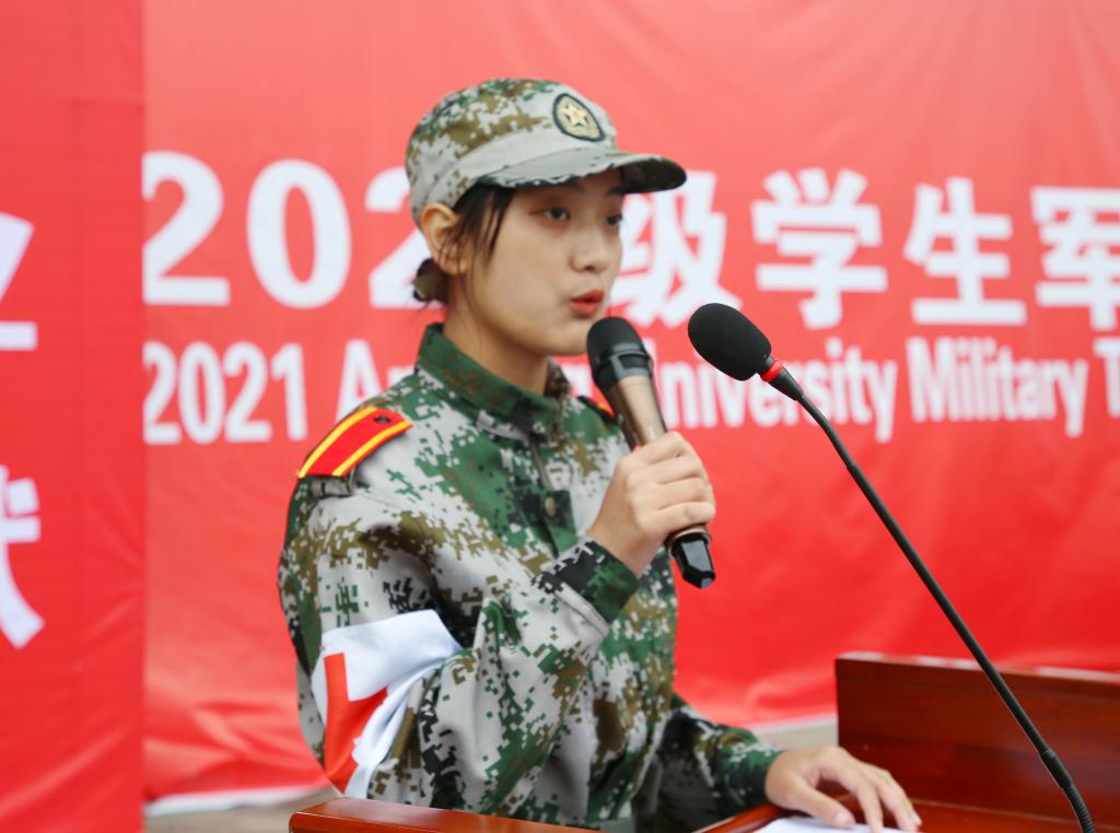 医学院2021级康复治疗学专业薛菁同学代表参训学员分享了军训中的感悟和收获,向风雨同行的教官表达了深深的谢意。她表示,军训让同学们增强了国防意识,培养了正规有序的生活作风,认识到新一代大学生不仅要潜心钻研,努力拼搏,更要肩负起建设祖国、保卫祖国的神圣使命。在未来的学习生活中,全体同学将以崭新的风貌出现在校园,努力学习、勇于进取、团结拼搏、超越自我;以奋进的形象开启心中的大学生活,严守纪律、追求卓越、团结奉献,守正创新,为学校的强大,为祖国的未来不懈奋斗。