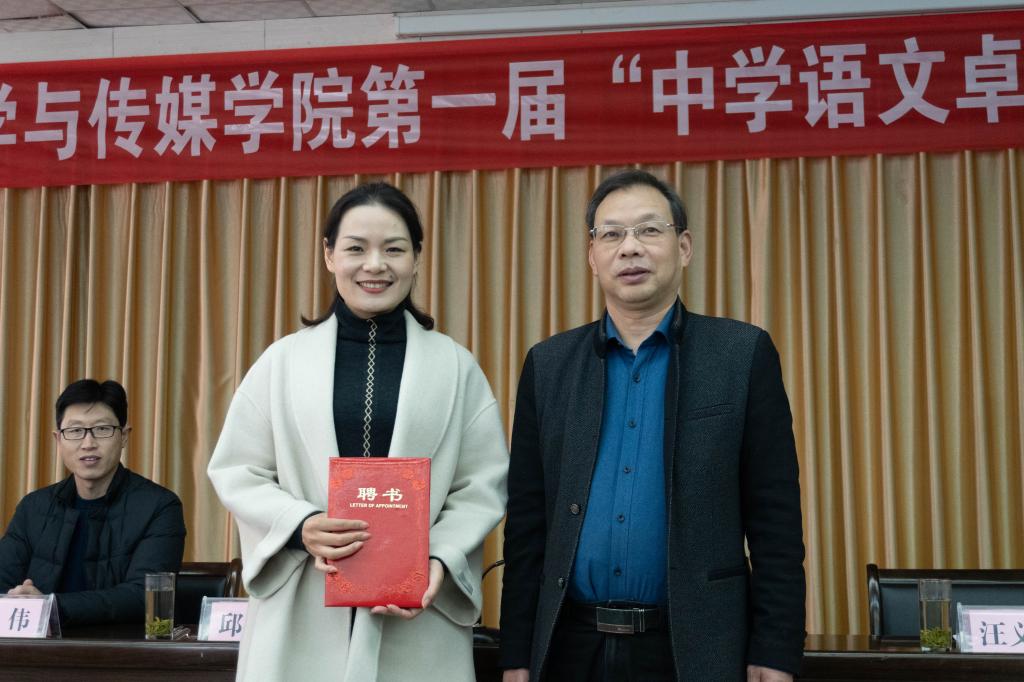 汪义瑞为陕西省教学名师邱俊颁发了“中学语文卓越师资班”行业导师聘书。