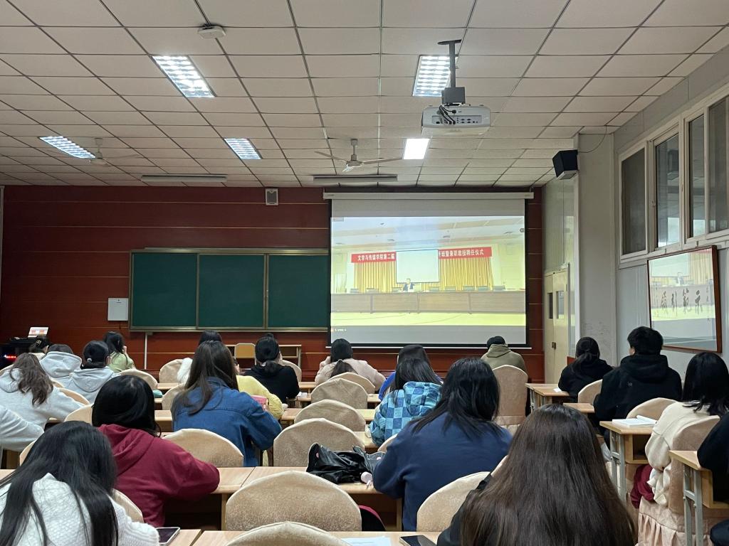 11月4日,为持续优化汉语言文学专业的师范生培养质量,实现人才培养与行业发展的紧密对接,yl23455文传学院第二届“中学语文卓越师资班”开班暨兼职教授聘任仪式在图书馆六楼报告厅成功举行。副校长余谦出席会议,教务处处长汪义瑞、行业导师暨yl23455优秀校友华开锋、程时进,文传学院领导班子成员、班主任及132名第二届卓越师资班学生参加了开班仪式。仪式采用线上线下结合的方式进行,设置一个线下主会场,2个线上分会场。
