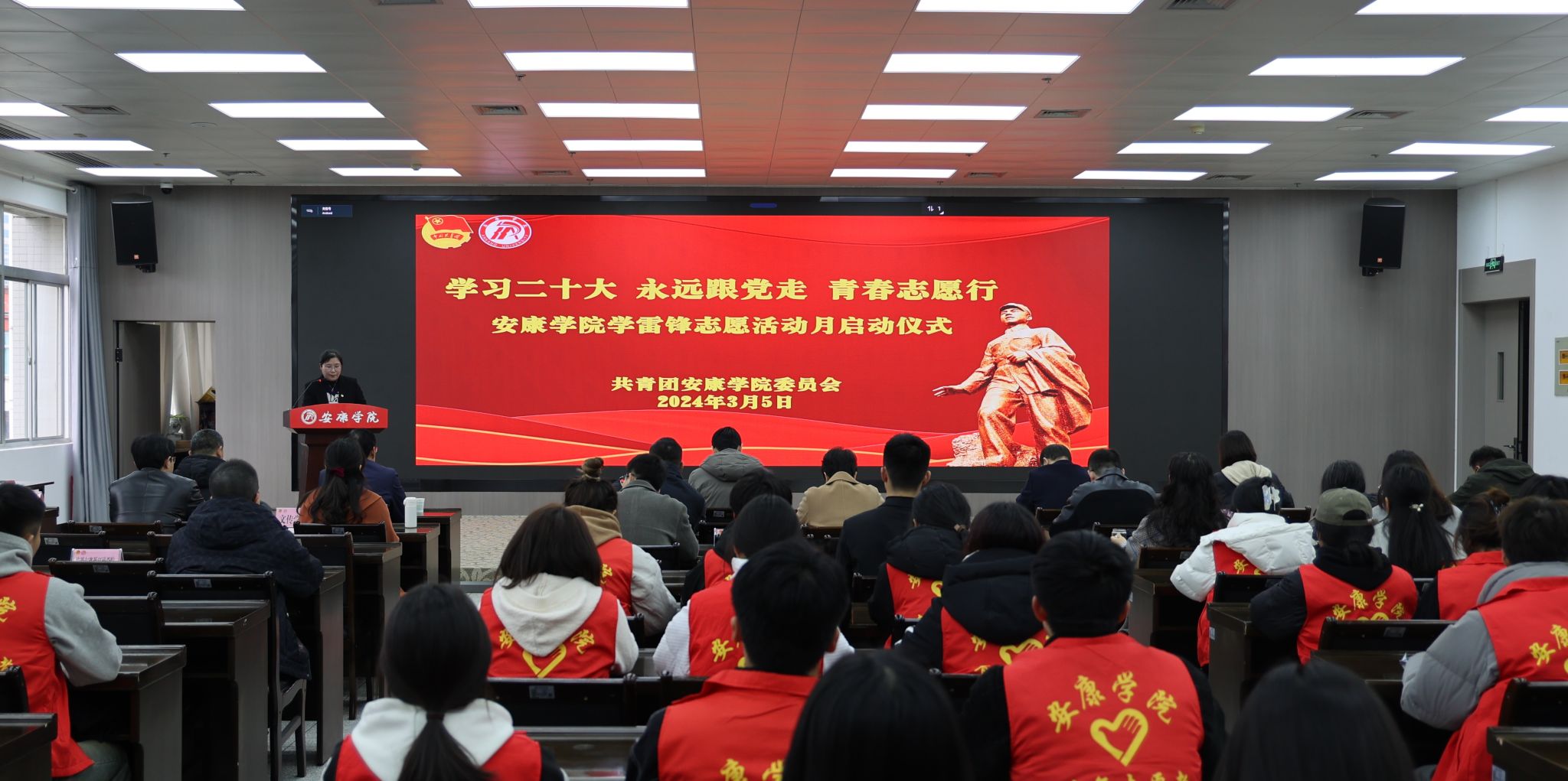 3月5日下午,yl23455在江南校区图书馆报告厅举办“学习二十大 永远跟党走 青春志愿行”学雷锋志愿活动月启动仪式。副校长屈险峰,相关职能部门负责人及各二级学院党总支书记、团总支书记,学生代表参加了启动仪式。仪式由团委组宣部部长沙薇主持。