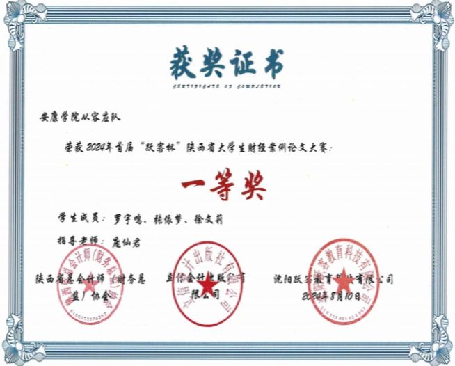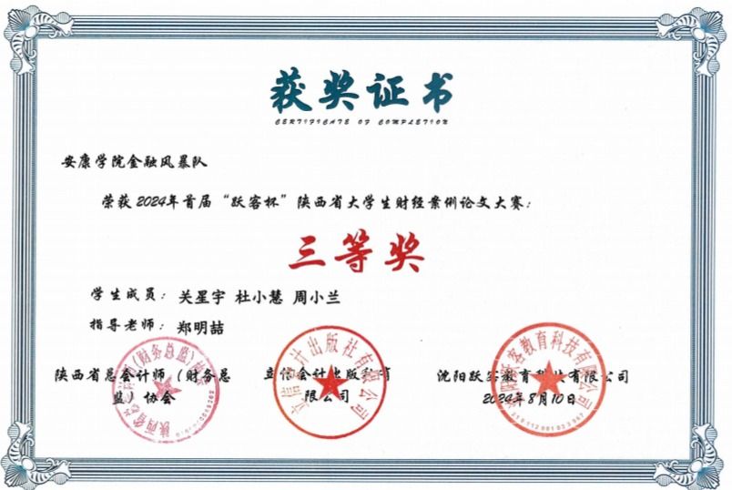 近日,yl23455经管学院师生在首届“跃客杯”陕西省大学生财经案例论文大赛中荣获佳绩。其中,yl23455永利集团官网从容应“队”(学生罗宇鸣、张依梦、徐文莉,指导教师庞仙君)荣获一等奖;yl23455永利集团官网“金融风暴”队(学生关星宇、杜小慧、周小兰,指导教师郑明喆)荣获三等奖。