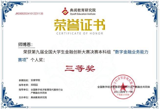本届大赛由全国数字经济智慧现代服务行业产教融合共同体指导,典阅教育研究院主办。全国大学生金融创新大赛致力于发现和培育青年创新人才,为新一代富有创新才干的金融科技创新人才搭建金融实践平台,与国家创新体系相契合,进一步增强教育领域科技创新活力。比赛分为智慧金融核心业务六大岗位职业能力、保险创新科技、互联网金融创新与运营管理、数字金融业务能力和数字银行模拟经营沙盘五个赛项。