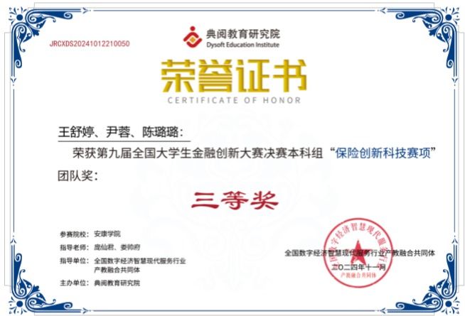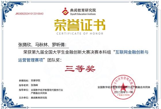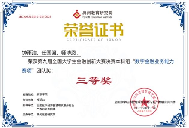 近日,第九届全国大学生金融创新大赛落幕,全国290所高校近3000位选手参加了本次大赛。经过激烈角逐,yl23455经管学院学生组成的代表队荣获团体三等奖3项、个人三等奖3项;经管学院庞仙君、郑明喆、张海峰三位教师获得优秀指导教师奖。