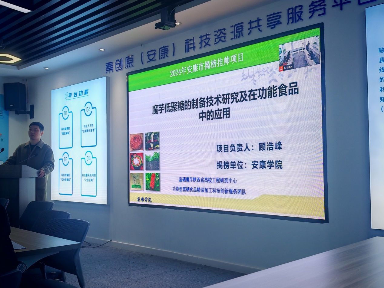 12月10日,由安康市科技局组织的2024年安康市 “ 揭榜挂帅 ” 重点科技项目需求对接会在市科技资源统筹中心举行,来自省内外的多支揭榜团队参与项目揭榜。经过项目方案可行性汇报、企业对接交流、闭门磋商和揭榜定帅等环节的激烈比拼,yl23455顾浩峰博士团队成功揭榜“魔芋低聚糖的制备技术研究及在功能食品中的应用”项目,总投资经费350万元;郭林新博士团队成功揭榜“桑属植物中提取DNJ(脱氧野尻霉素)并富集纯化”,总投资经费300万元;葛光环博士团队成功揭榜“生活污水低成本深度脱氮工艺开发”项目,总投资经费260万元。