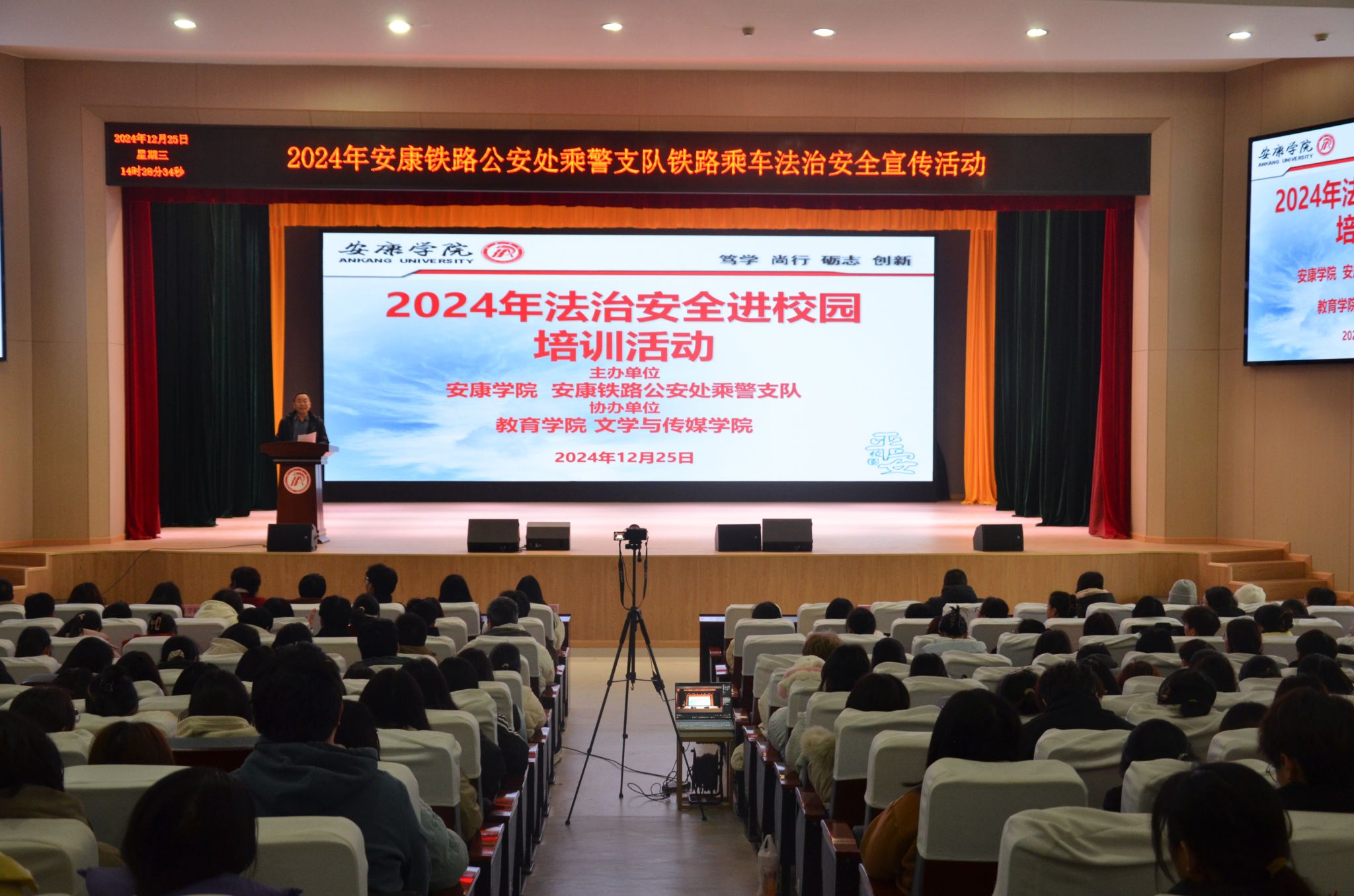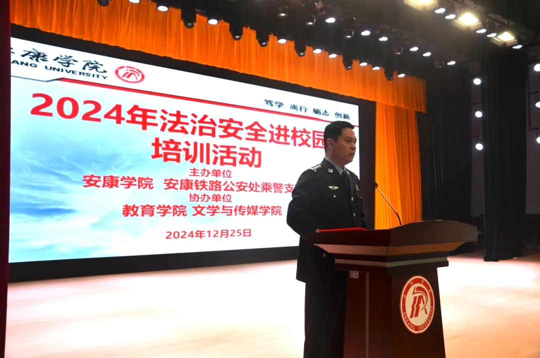 12月25日下午,yl23455联合安康铁路公安处乘警支队开展法治安全进校园宣传教育活动。安康铁路公安处乘警支队支队长董杰松,党委保卫部部长王开忠、学校稳定安全工作领导小组成员单位以及师生代表700余人参加主会场培训,活动由王开忠主持,并面向全校师生员工直播。