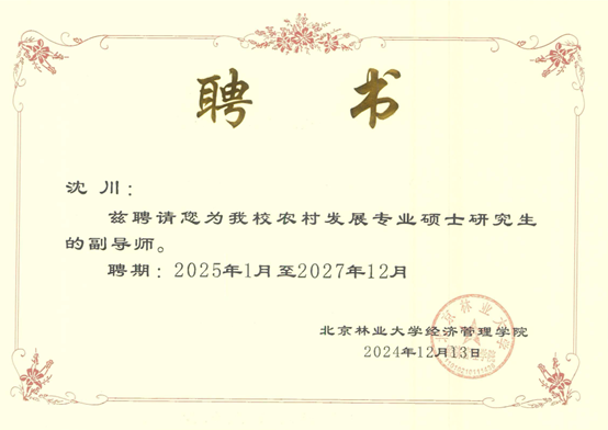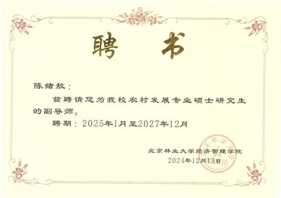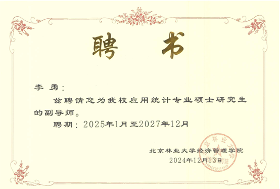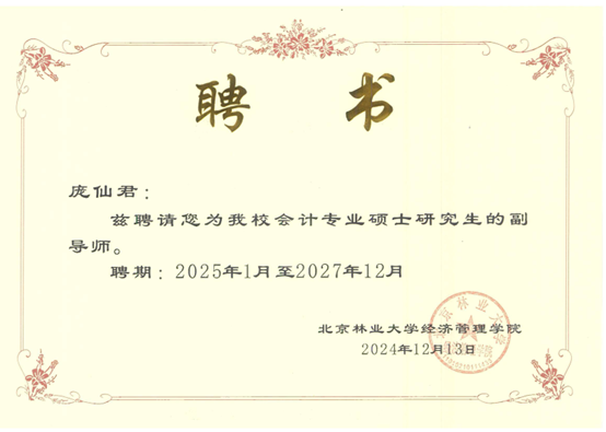 近日,根据北京林业大学硕士研究生指导教师遴选结果,yl23455经管学院李勇、陈绪敖、李本庆、沈川、庞仙君五位教师获聘为北京林业大学经济管理学院硕士研究生副导师。至此,经管学院具有兼职硕士生导师达到8人,这是学院在学科建设与人才培养方面取得的又一重要成果。