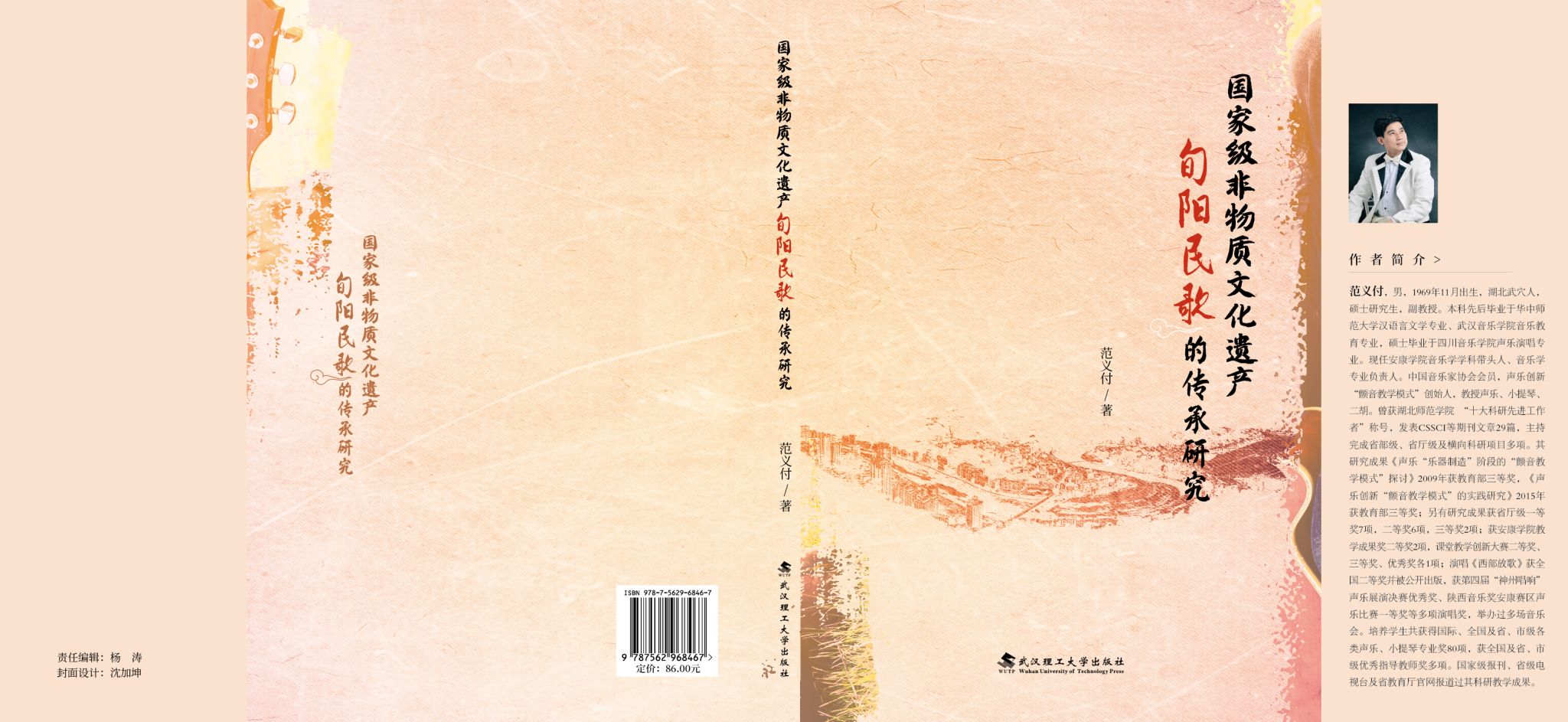近日,yl23455艺术学院副教授范义付完成的学术著作《国家级非物质文化遗产旬阳民歌的传承研究》一书由武汉理工大学出版社出版发行。