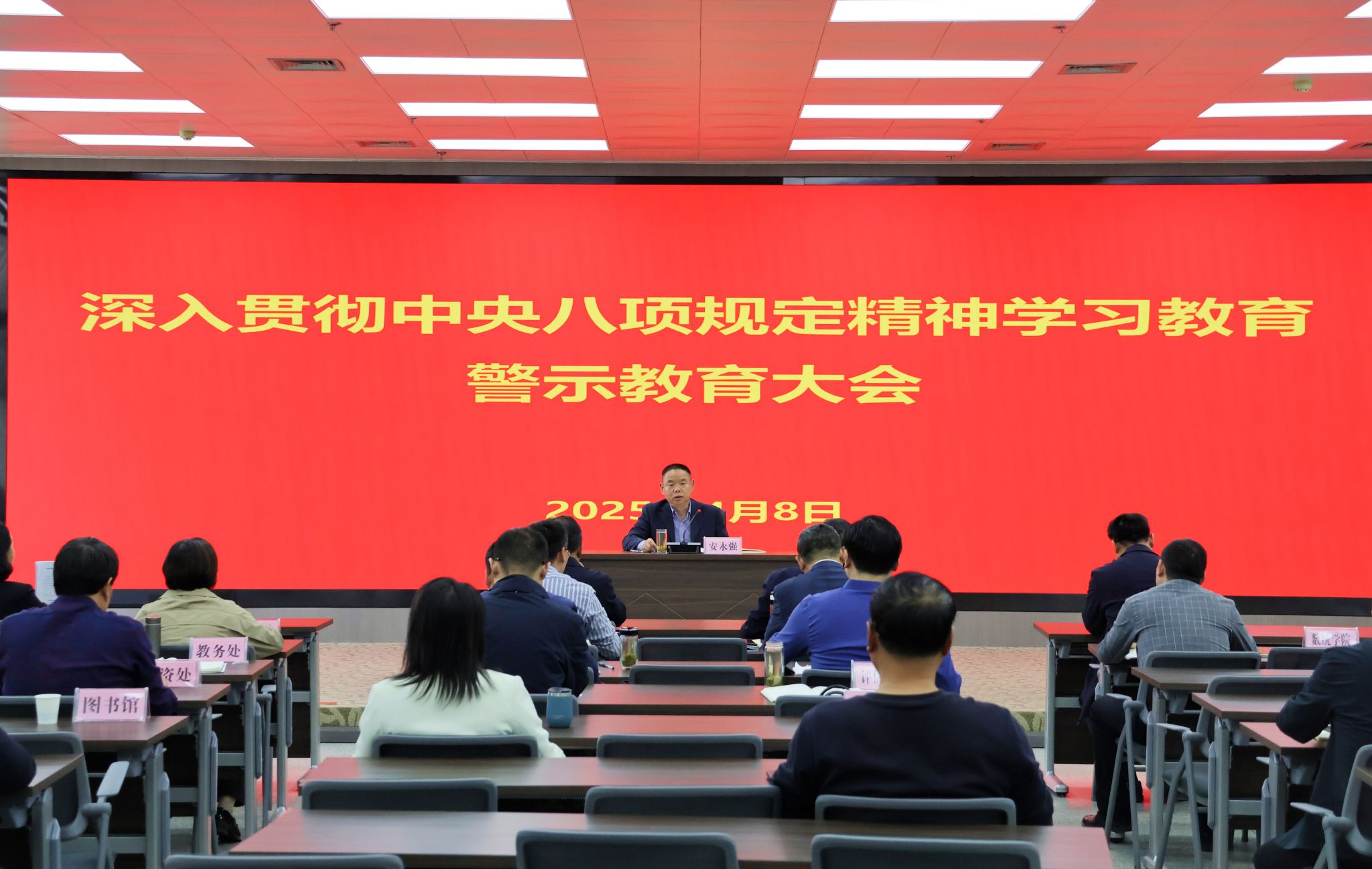 会议传达学习了贯彻落实中央八项规定及其实施细则精神重要文件。党委副书记、纪委书记、监察专员安永强作题为《认真开展深入贯彻中央八项规定精神学习教育,不断推进学校各项事业高质量发展》的辅导报告,报告紧扣主题,详细解读了中央八项规定及其精神的主要内容,深入阐释了中央八项规定实施的重大意义,重点强调了扎实开展深入贯彻中央八项规定精神学习教育的实践要求。