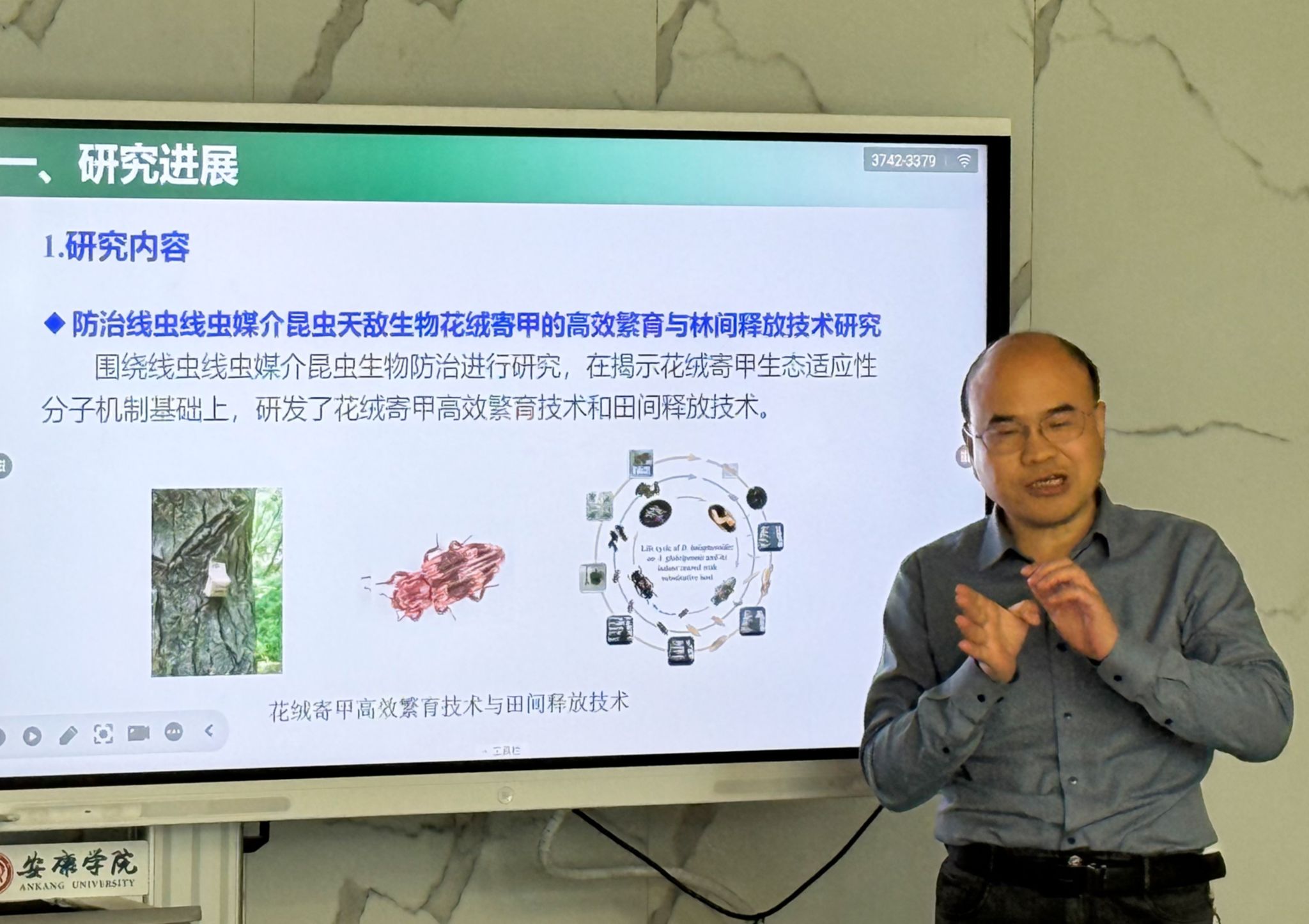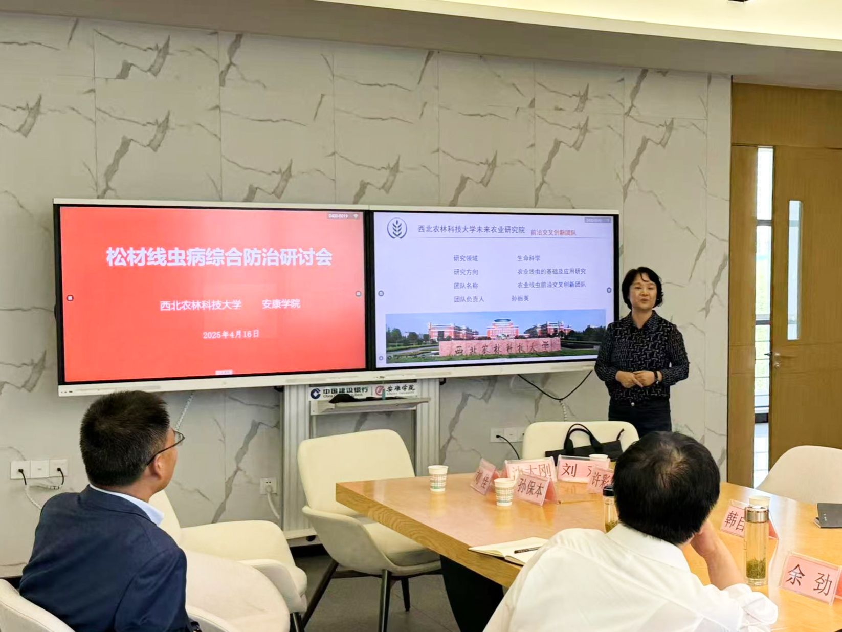 会上,孙丽英教授介绍了团队在松材线虫致病机制及绿色防控技术方面的研究进展;唐光辉教授结合多年实践经验,分享了松材线虫病的防治现状及挑战;韩自端教授就松材线虫病的专项研究设计进行了详细阐述。随后,yl23455永利集团官网教师刘欢汇报了松材线虫病在安康地区的发生情况,为后续防控工作提供了重要参考。