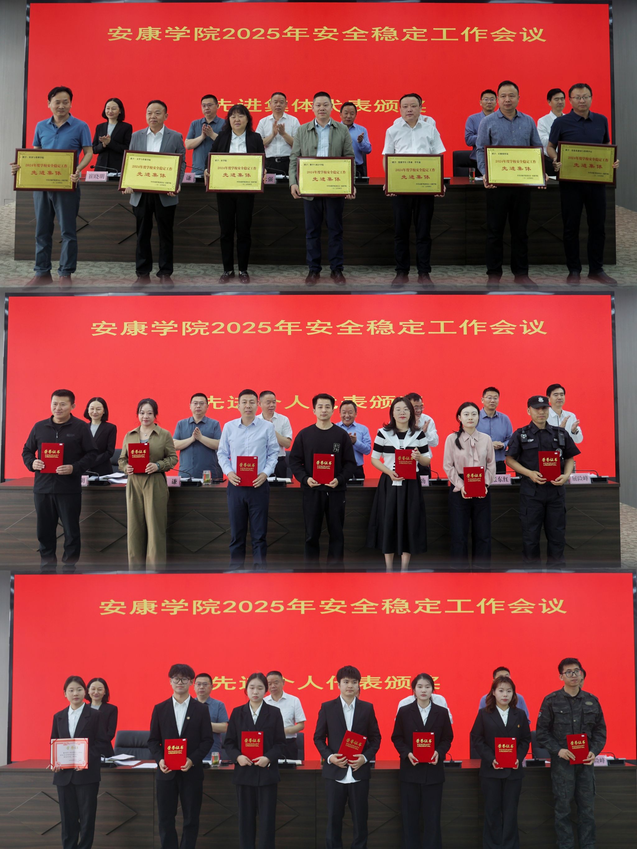 党委副书记张东红宣读学校《关于表彰2024年度安全稳定工作先进集体和先进个人的决定》,会议对经济与管理学院等10个安全稳定工作先进集体,于正豪等97名安全稳定工作先进个人进行了表彰。
