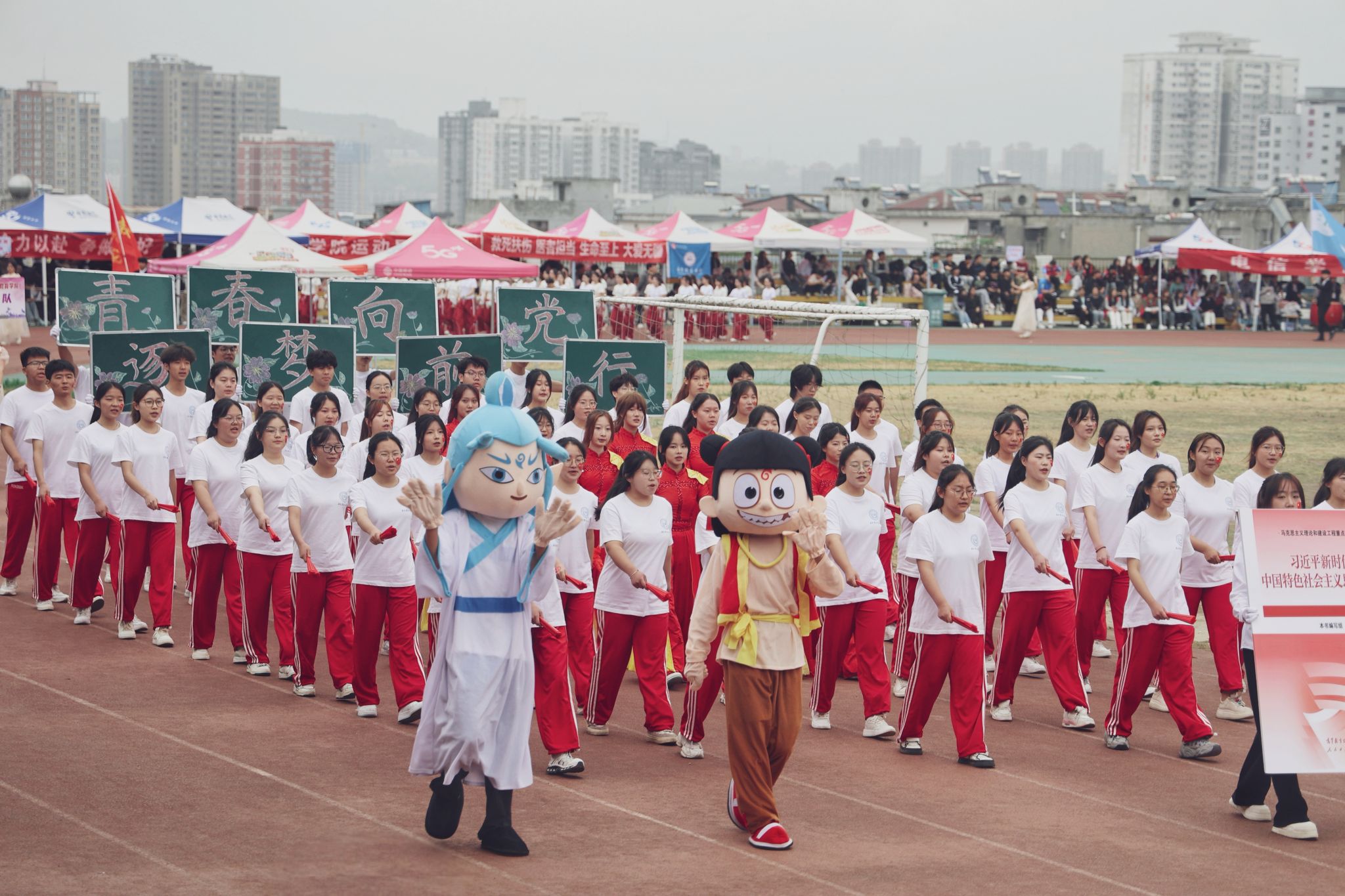 十二个学院组成的学生方阵和教职工方阵精神抖擞、步伐矫健地走过主席台,他们身着整齐统一的服装,喊着响亮有力的口号,展现出yl23455师生积极向上、团结奋进的精神风貌。舞龙队腾跃九霄、柔力球刚柔并济、创意秋舞灵动飘逸,花球方阵炫彩夺目,各表演队伍以融合专业特色的创意节目,谱写出体育与艺术交织的青春诗篇。
