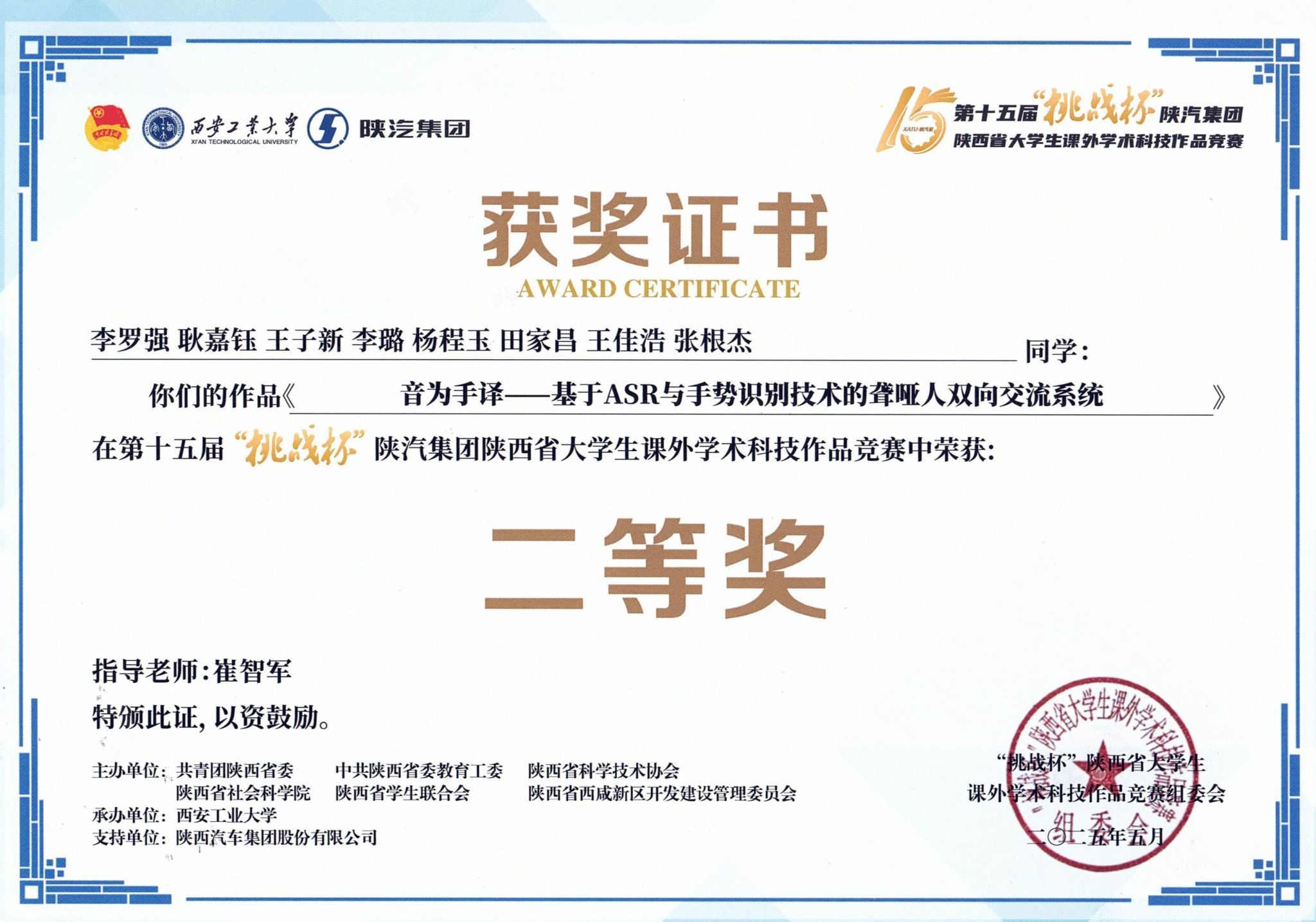 近日,由团省委、省委教育工委、省科协、省社科院、省学联与省西咸新区管委会联合主办、西安工业大学承办的第十五届“挑战杯”陕汽集团陕西省大学生课外学术科技作品竞赛落下帷幕。yl23455学子在竞赛中表现优异,斩获二等奖2项、三等奖5项,展现出扎实的学术素养与创新能力。