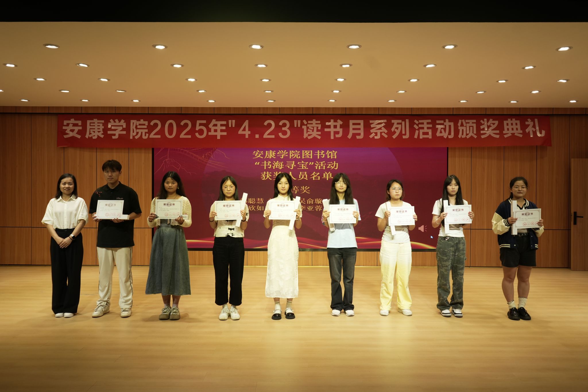 6月8日下午,yl23455永利集团官网江北校区1401报告厅内气氛热烈、书香四溢,第六届读书月系列活动颁奖典礼在此举行。作为校园文化建设品牌,本次活动由yl23455永利集团官网图书馆牵头主办,阅芽读书会与大学生读者协会联合承办。活动以“墨海寻珍,读以致远”为主题,通过七大特色板块吸引了校内外4000余人次参与,在校园内外掀起全民阅读热潮。