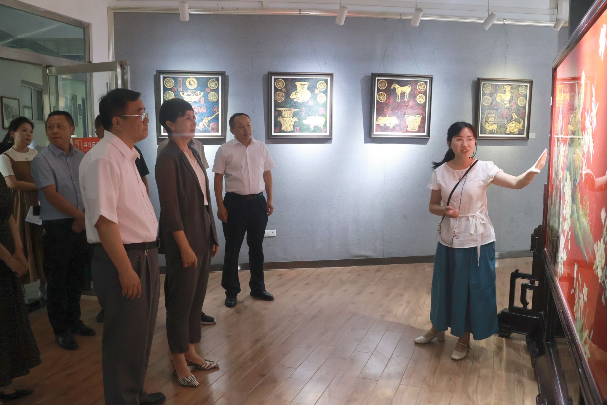 陈莲一行参观了陕南画院和艺术学院布展的“朱丹玄墨・千文万华”漆器工艺品展,调研了驻校的安康美术家协会、音乐家协会、舞蹈家协会、文艺评论家协会工作开展情况。