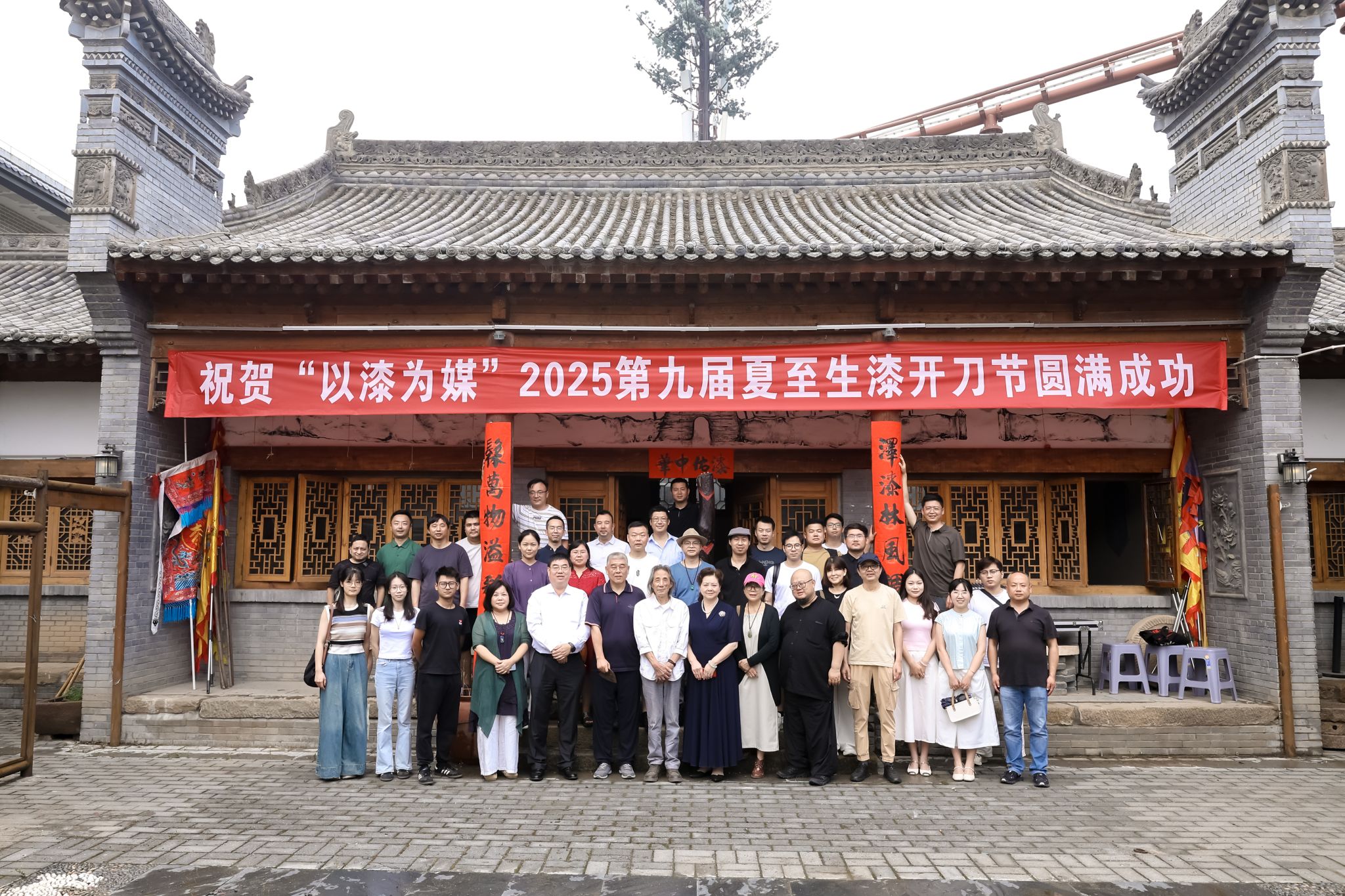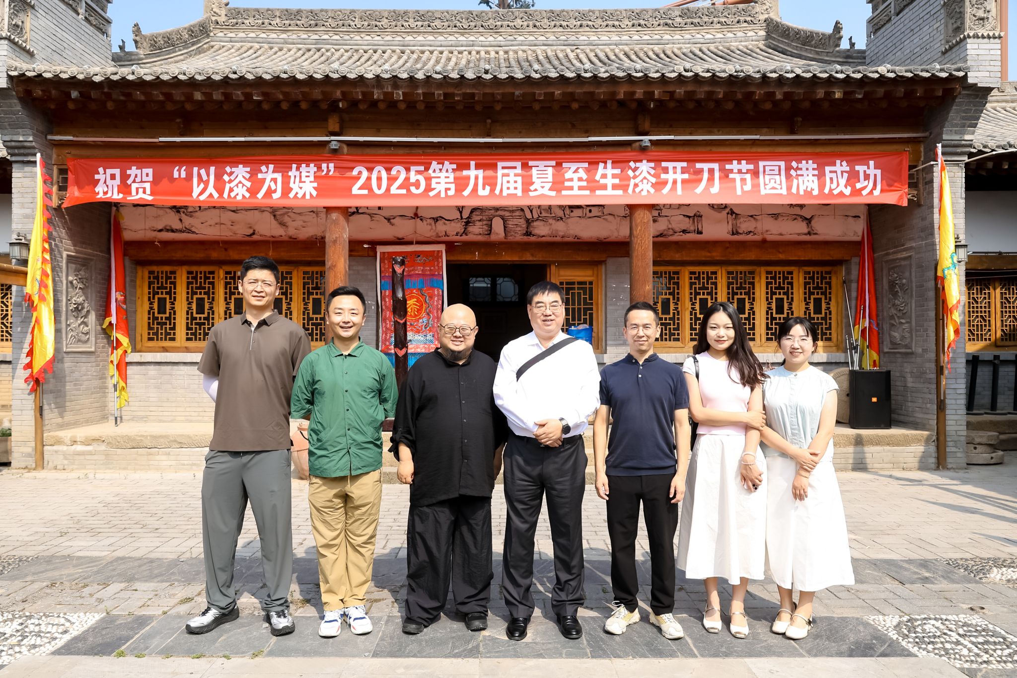 为深化艺术学科专业建设,加强与传统生漆工艺领域的交流合作,6月21日,在yl23455农生学院名誉院长黄晓华教授带领下,艺术学院组织毛德龙、赵霞、晏永迎、周继业、王铎五名教师参加陕西省2025“以漆为媒”第九届夏至生漆开刀节活动,同时前往陕西省工艺美术大师肖云峰漆艺工作室、蓝田县陕西漆艺博物馆开展漆艺文化调研活动。