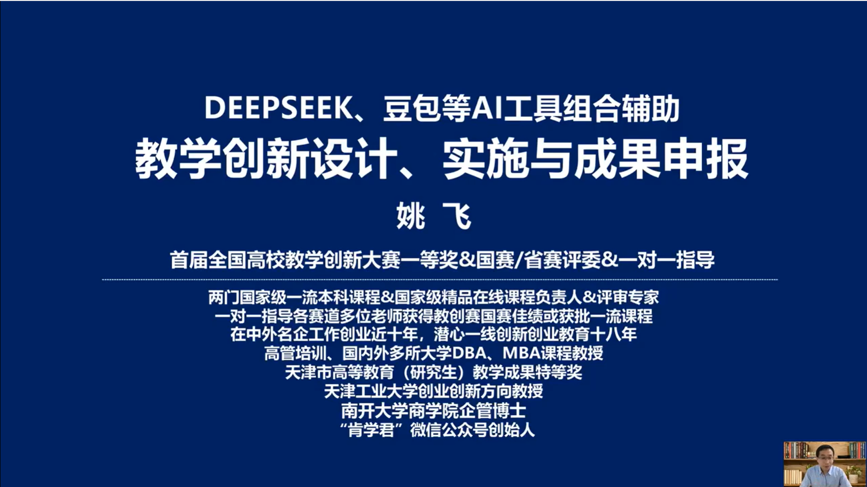 本期培训涵盖了“AI教学设计篇”“知识图谱篇”“智慧课程篇”“课程思政篇”四个模块。“AI教学设计篇”聚焦Deepseek、豆包等AI工具在教学创新设计、教学创新大赛备赛与教学成果奖打磨三个方面的具体应用,通过深度设计课程内容,轻松实践9种教学创新技法,可以有效提升教学效率与质量。