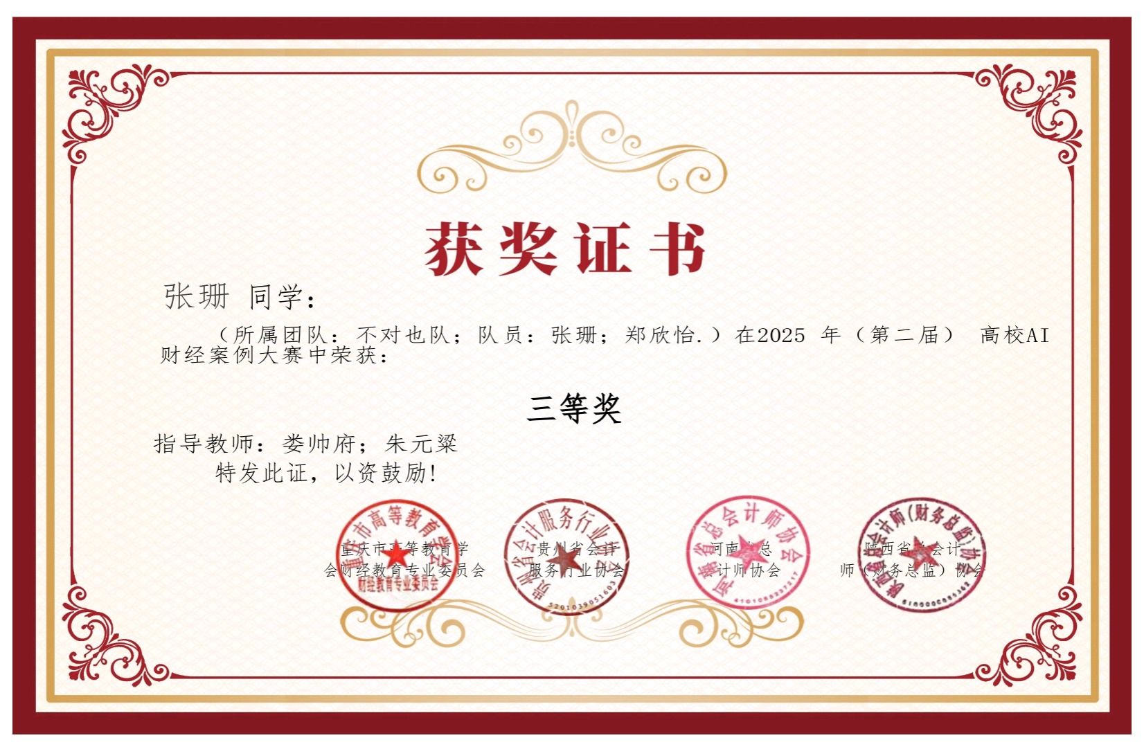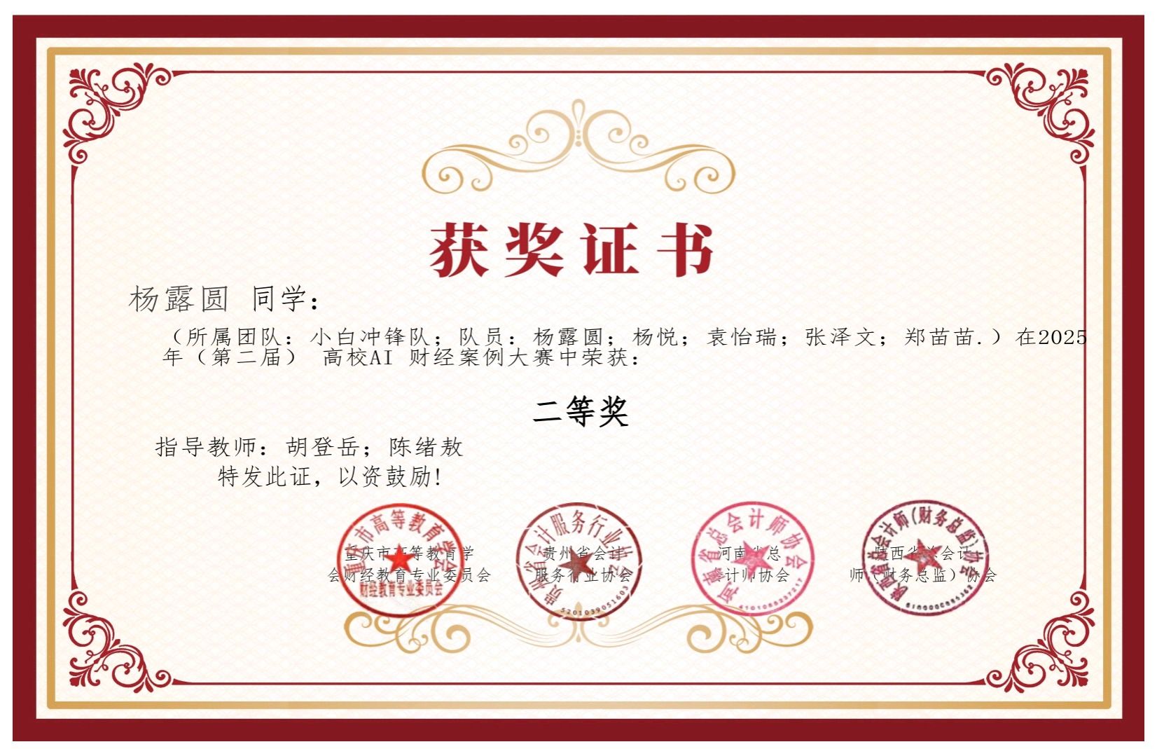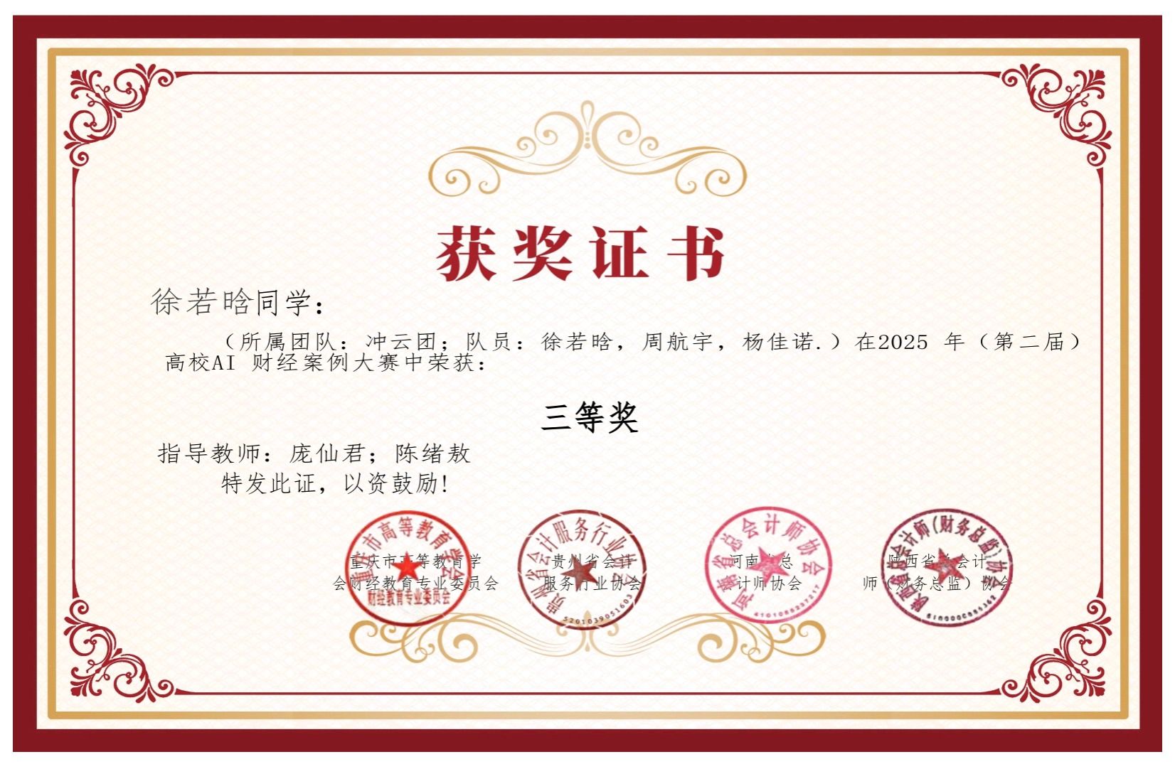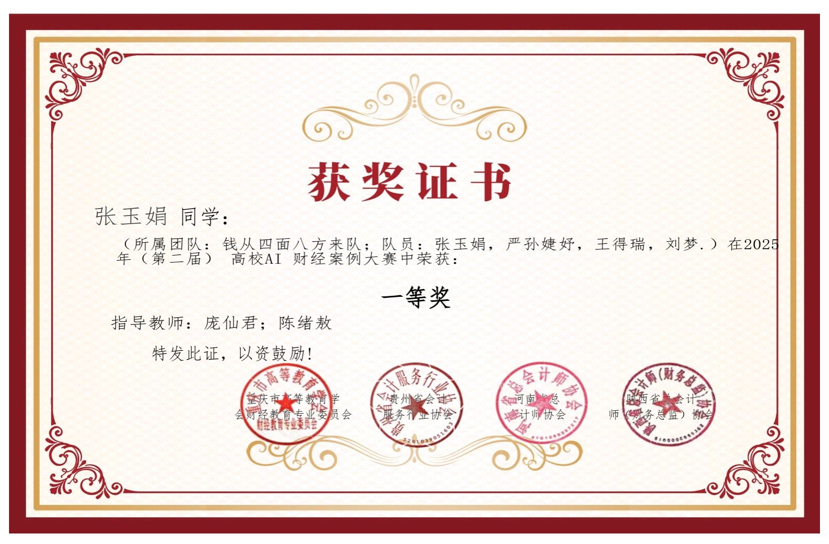 经管学院参赛团队在指导教师的悉心指导下,通过对AI技术的精准运用、财经案例的深刻剖析,形成兼具创新性与实践价值的解决方案,最终取得优异成绩。此次获奖不仅是对学生专业素养的肯定,更彰显了学校在应用型人才培养方面的探索成果。未来,学校将以赛事为契机,进一步强化产教融合与协同创新,为培养适应数字经济发展的复合型人才持续赋能。
