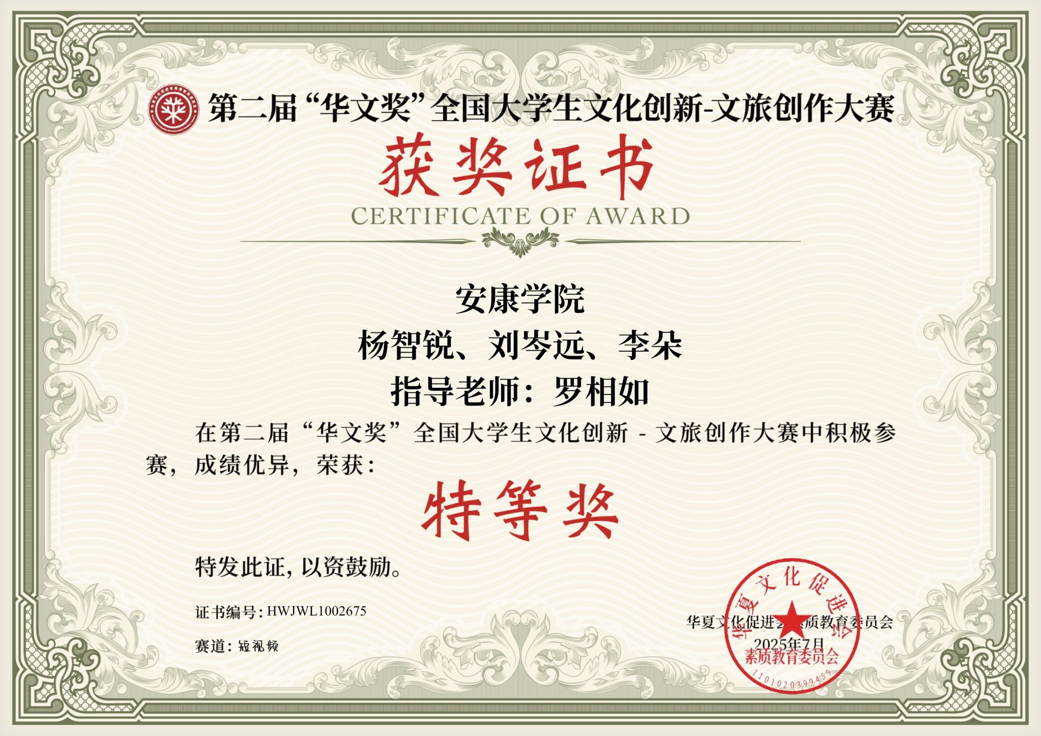 《汉水遗韵》由文传学院教师罗相如指导,网络与新媒体专业学生杨智锐、刘岑远、李朵通过采访、拍摄、剪辑共同完成。该作品时长4分52秒,通过镜头语言创新呈现了安康地方国家级非遗“汉调二黄”的生存现状与文化价值,其专业化的影像叙事能力与深度的文化洞察力获得评委会高度评价。这既是文传学院师生扎根秦巴,服务地方发展的成果展现,也是学院应用型人才培养模式的积极探索。文传学院将持续推进专业学习与社会实践相融合,坚持以赛促教,以创育人,不断提升人才培养质量。