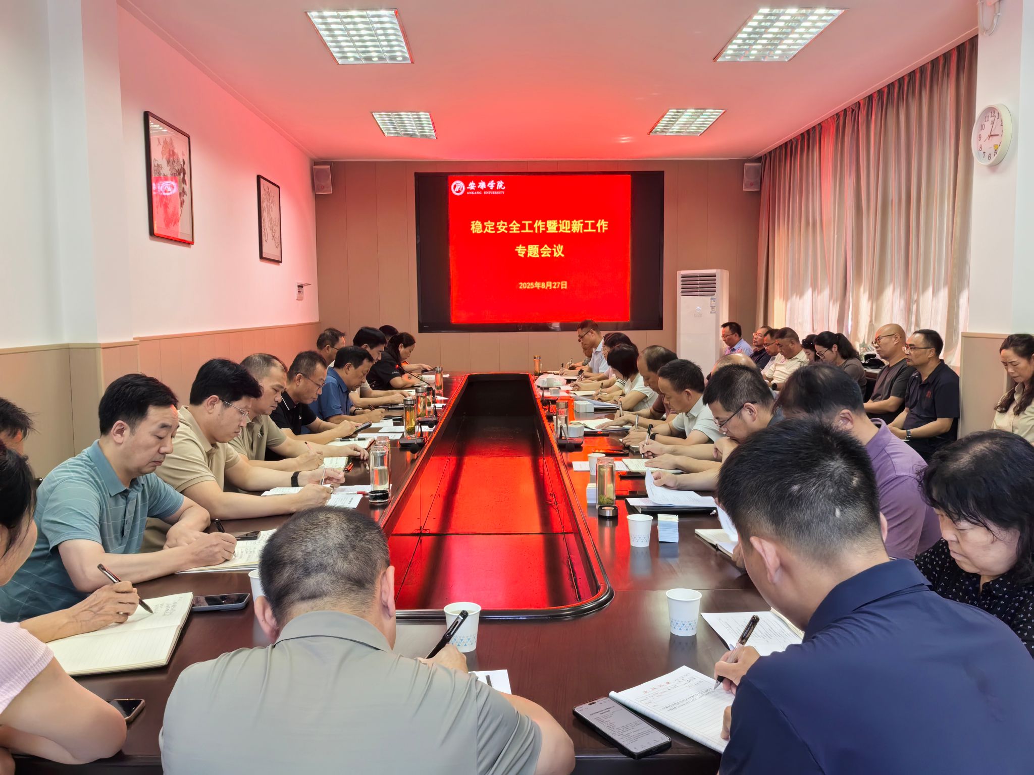 屈险峰传达了省委教育工委关于近期稳定安全工作会议精神,分析研判校园安全形势,并就新学期及迎新期间的学生思想动态、教育管理、校园风险隐患排查等重点环节作了安排部署。胡海青围绕教学运行“第一课”,对开学教学准备、教学计划编制、实习实训安全、实验室建设、审核评估整改及专业优化调整等工作进行重点强调。