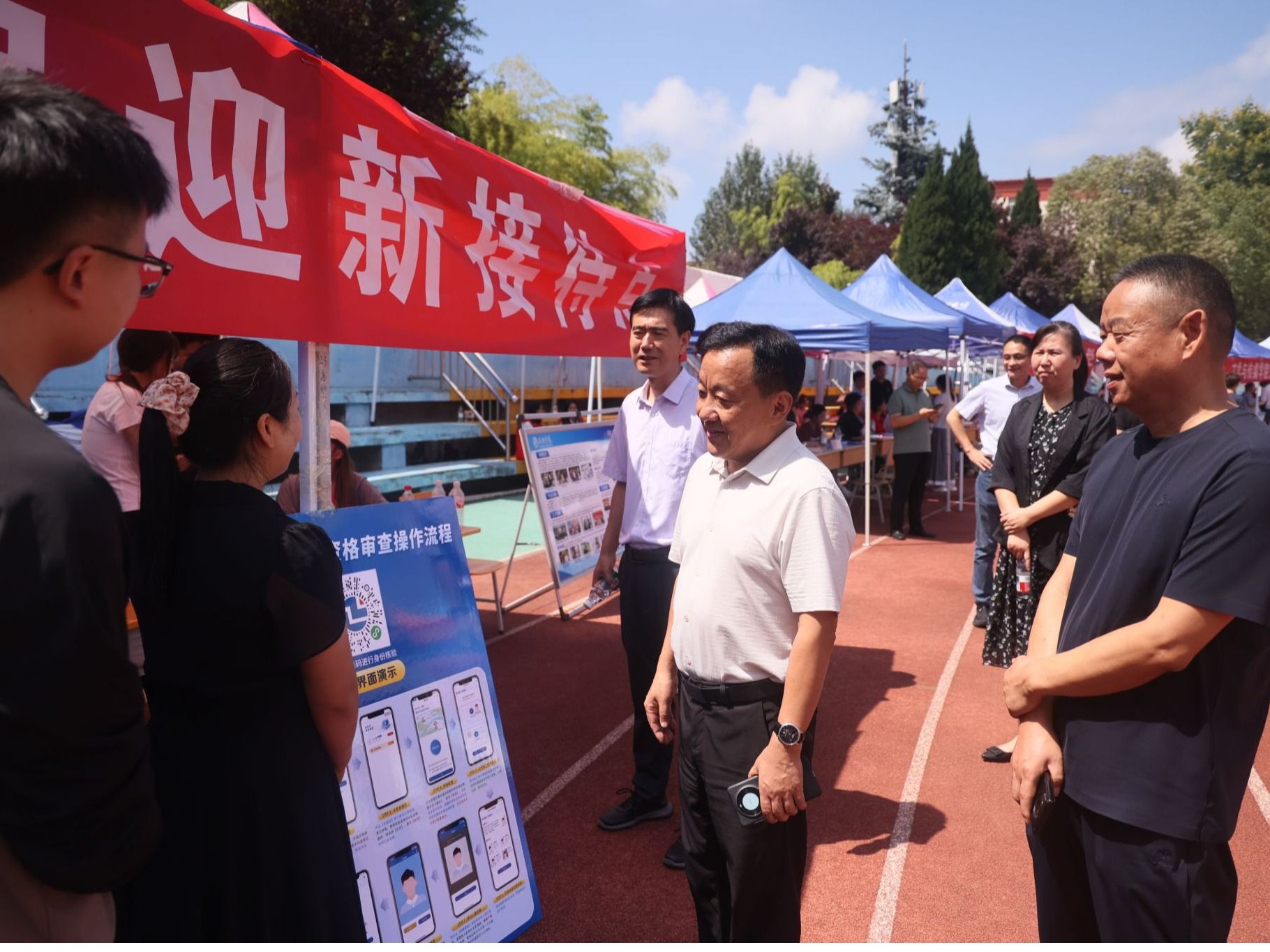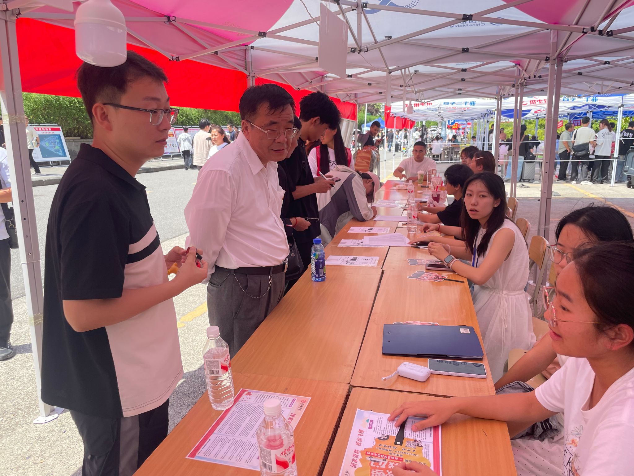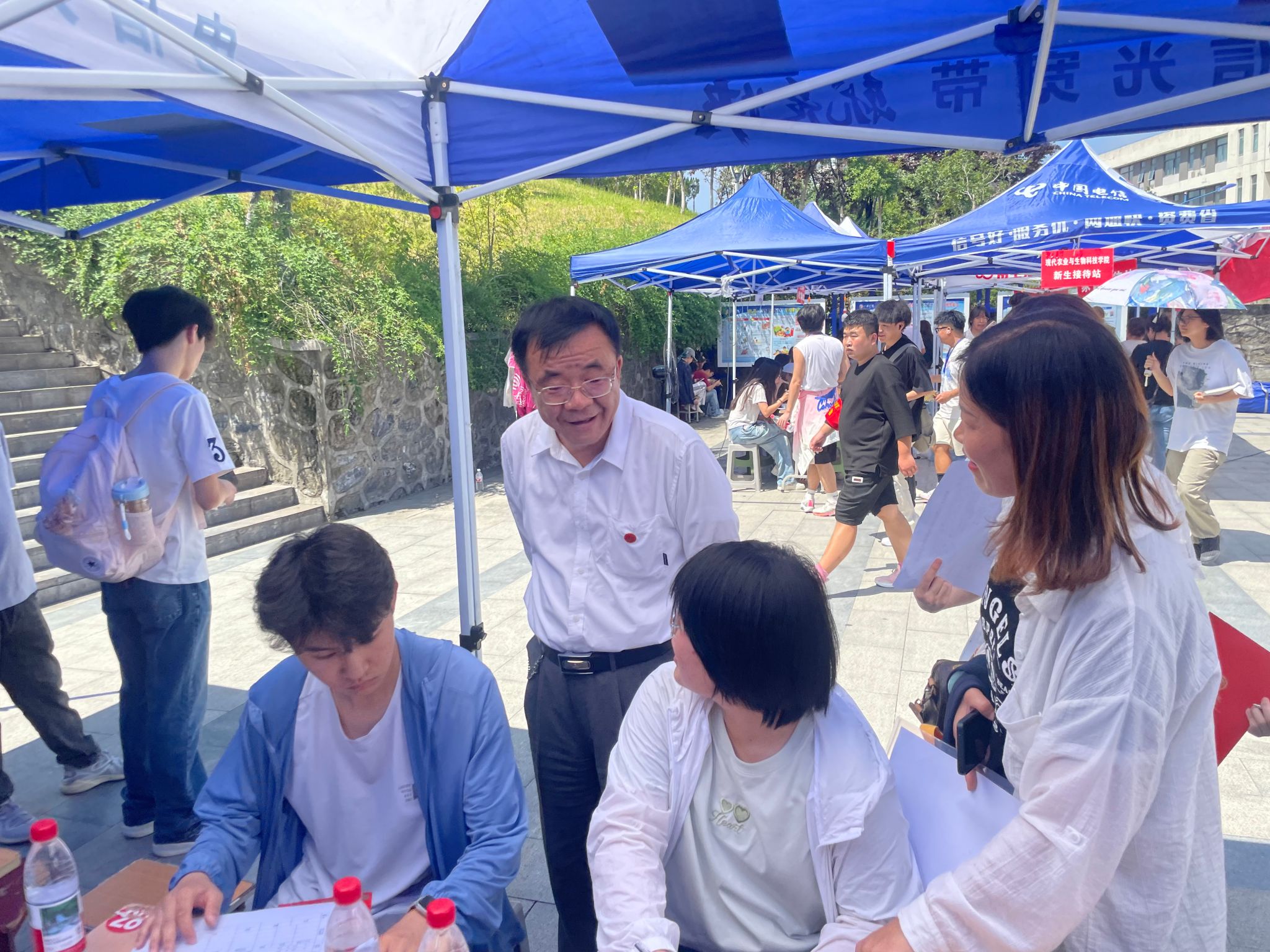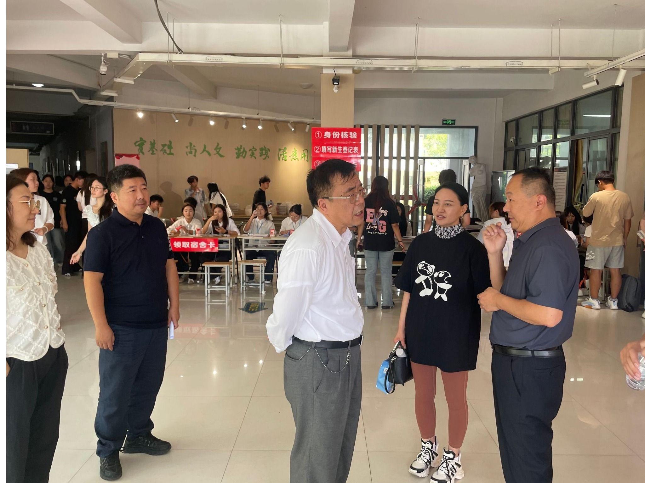 在家长休息区,校领导与新生及家长亲切交流,关切地询问:“同学,你来自哪里?”“报到过程中有没有需要学校协助解决的困难?”“对迎新服务还有哪些改进建议?”同时表示:学校会把每一位学生当作自己的孩子,全力创造优良的学习生活环境,请家长放心。