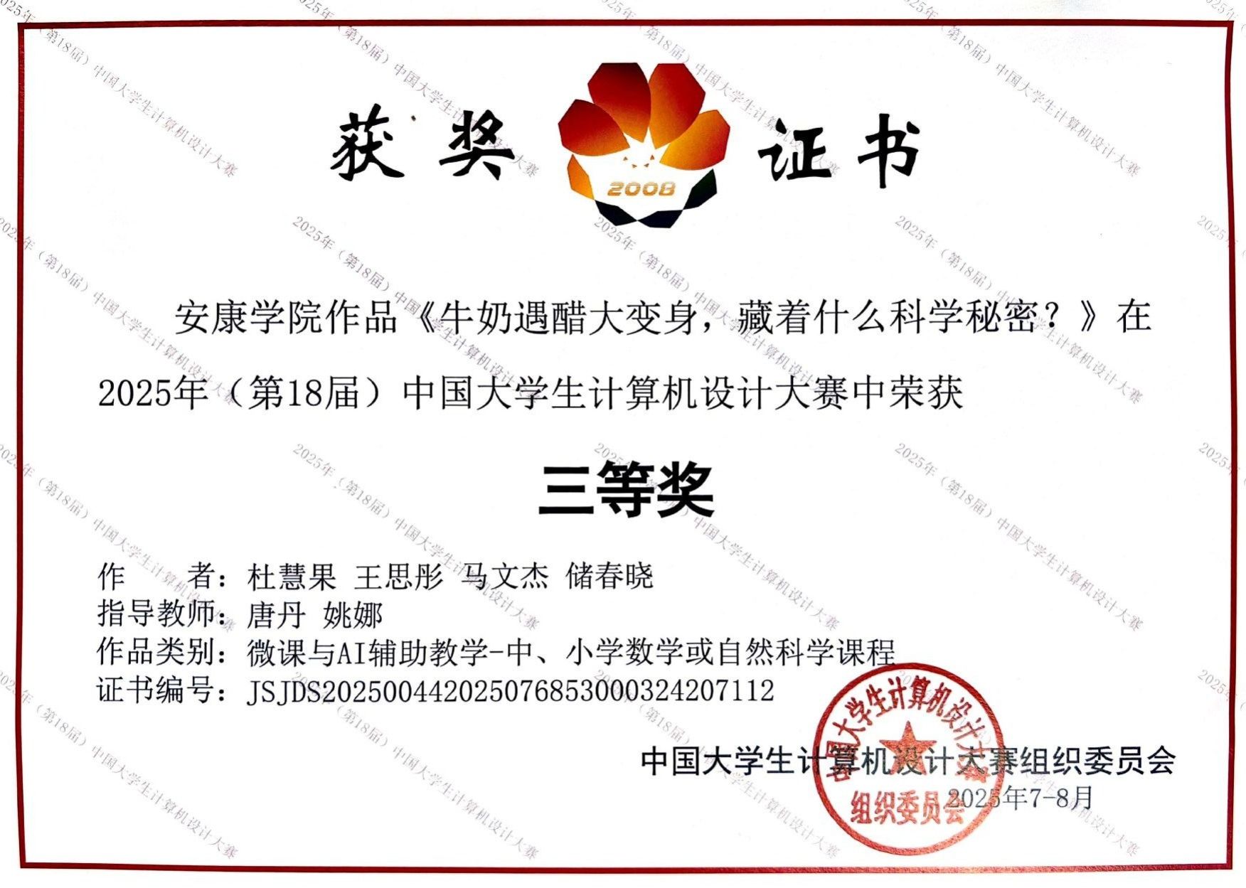 近日,2025年(第18届)中国大学生计算机设计大赛全国总决赛落幕,yl23455学子斩获3项国家级三等奖,充分展现了yl23455的教学成果与学子的良好风貌。