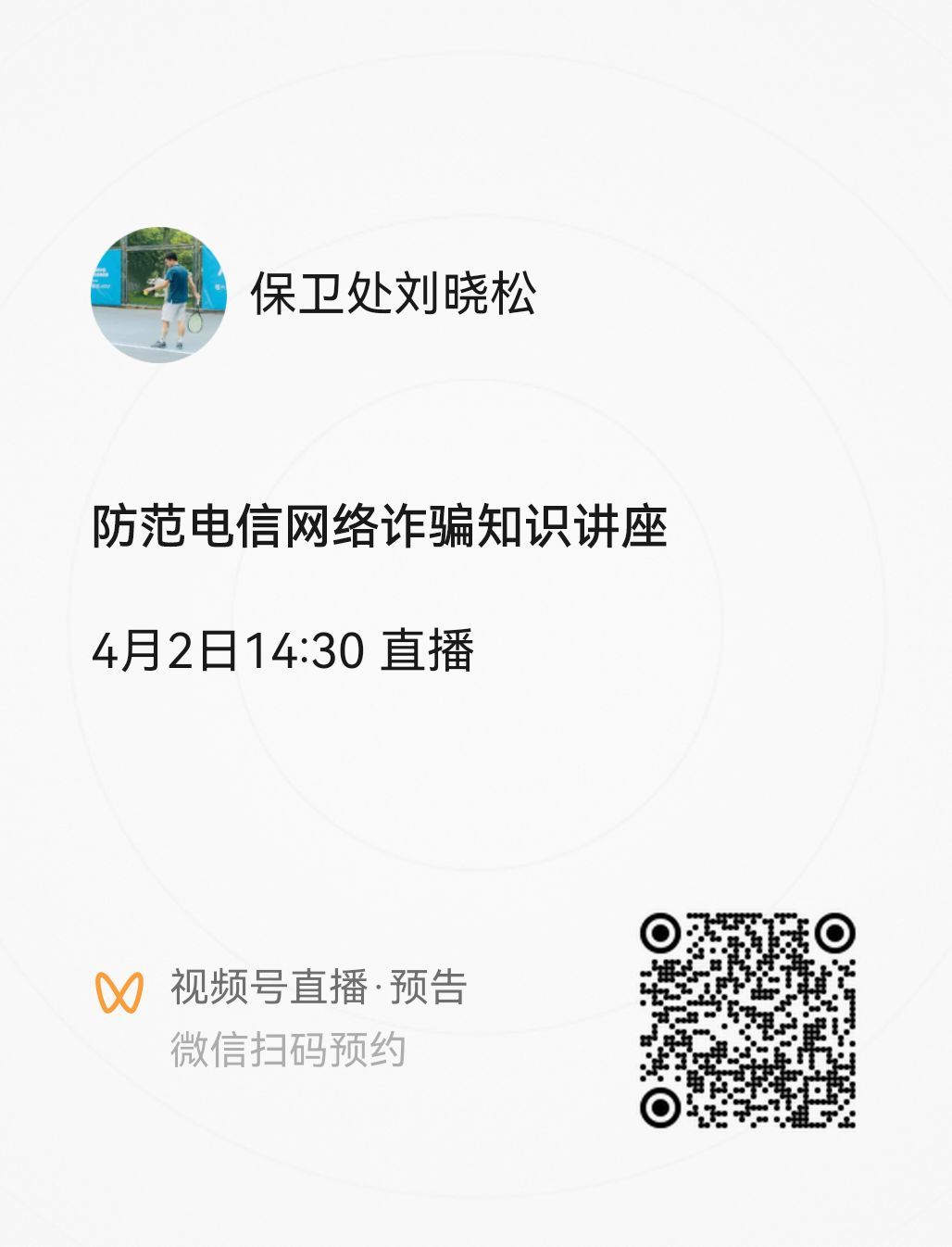 关注yl23455永利集团官网保卫处公众号进入视频号进行观看,也可通过扫码预约直播进行观看。