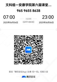 (二)线上观摩。本次比赛由腾讯会议进行全程直播。请各位老师扫描二维码或在腾讯会议APP中输入会议号码进行线上观摩。
