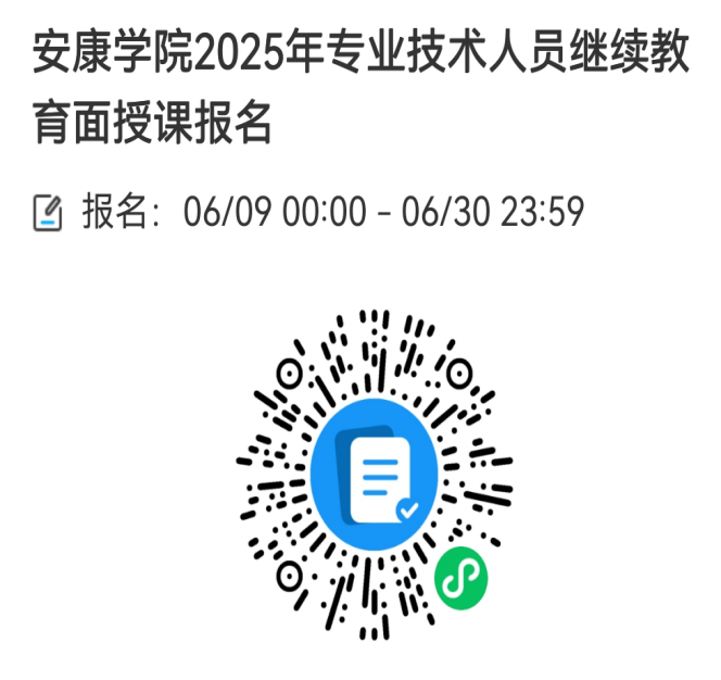 网上报名:学员通过扫描识别下图二维码进行报名并加入QQ群。报名时,请务必正确填写个人姓名、身份证号、手机号码、单位名称、课程类别及继续教育证书号等信息。其中,证书号信息请个人登陆陕西省专业技术人员继续教育学习平台后在“基本资料”一栏进行查询。