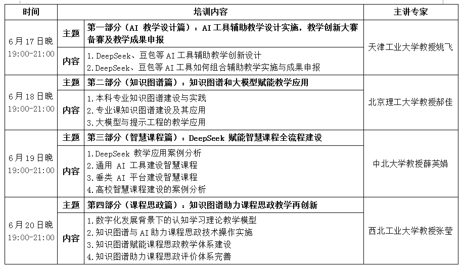 为积极响应国家教育数字化战略行动,全面推进人工智能技术与教育教学的深度融合,进一步帮助教师更新教育理念、创新教学模式,切实提升教师教学效率与课堂教学质量,学校决定举办人工智能赋能教育教学系列培训。现就第四期培训相关安排通知如下: