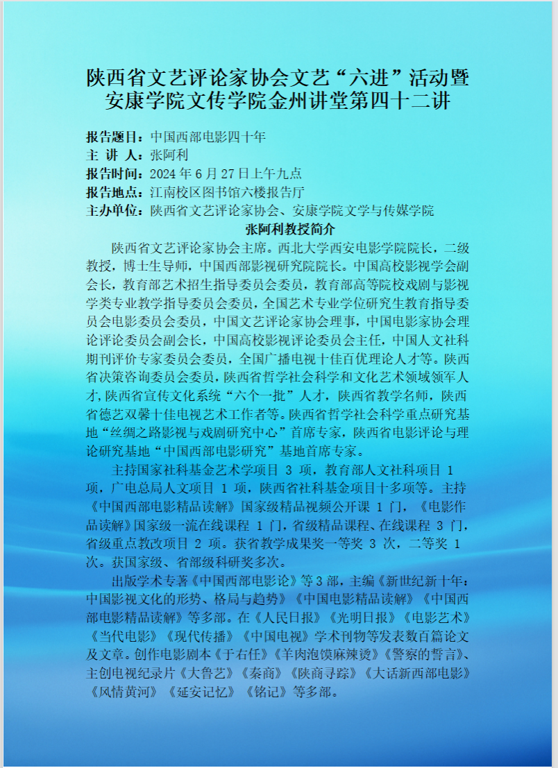 张阿利,陕西省文艺评论家协会主席,西北大学西安电影学院院长,二级教授,博士生导师,中国西部影视研究院院长。中国高校影视学会副会长,教育部高等院校戏剧与影视学专业教学指导委员会委员,全国艺术专业学位研究生教育指导委员会委员,陕西省决策咨询委员会委员,陕西省哲学社会科学和文化艺术领域领军人才,陕西省宣传文化系统“六个一批”人才,陕西省教学名师,陕西省德艺双馨十佳电视艺术工作者。